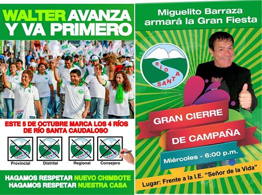 Chimbote en Línea (Elecciones 2014).- El candidato a la alcaldía de Nuevo Chimbote por el movimiento regional Río Santa Caudaloso, Walter Soto, recorrió ayer los mercados Los Cedros y Santa Rosa en el distrito sureño, como una de sus últimas actividades proselitistas.