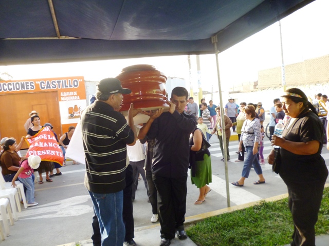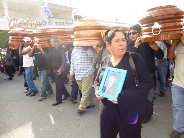 Pero no quedaba más que cargar con el dolor y también llevar en hombros a los héroes que hoy están con nosotros sólo por dos días, para luego descansar bajo tierra pero esta vez enterrados por sus mismos familiares y no por asesinos. Amigos, familiares y pobladores en general; todos pugnaban por cargar a las víctimas.