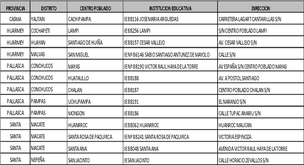 En el caso de los distritos se hará en las siguientes Instituciones Educativas :