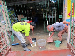 La inundación empezó a las 3 de la mañana en la cuarta cuadra de Aviación y desde esa hora los vecinos no dejaron de trabajar, algunos colocando sacos de arena en sus puertas para evitar que el agua ingrese a sus casas, pero otros sacando el agua en baldes de sus viviendas.