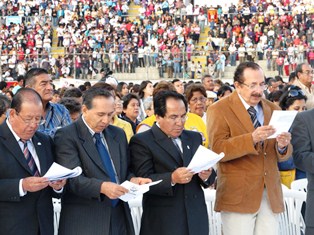 Igualmente y siempre liderados por el rector y con la presencia de decanos de las facultades se participó en la solemne y gran misa realizada en el estadio centenario “Manuel Rivera Sánchez” , el último domingo, acto que contó con la presencia de Monseñor Luis Bambarén, segundo Obispo en la historia de la Diócesis, y de obispos de otras jurisdicciones eclesiásticas invitados. (Con datos de Nota de prensa)
