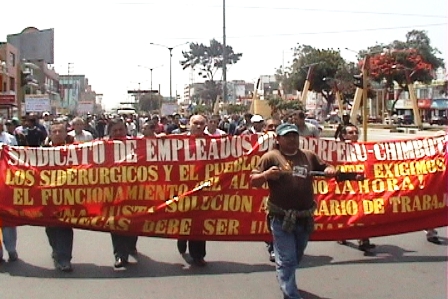 Chimbotenlínea.com (Por: Gonzalo Horna) VIDEO.- Un grupo de por lo menos 300 trabajadores siderúrgicos desfilaron esta mañana por las principales calles de la ciudad. El motivo, mejores condiciones en la alimentación que reciben por parte del proveedor que abastece de alimentos a la empresa.Y es que según comentan Sider Perú tomó la decisión de cambiar el horario de trabajo de 5:00 a.m. a 1:00 p.m. por el de 7:00 a.m. a 3:00 p.m. Pero eso no es todo, ya que los trabajadores también denuncian recibir alimentos en mal estado en el comedor recientemente inaugurado.