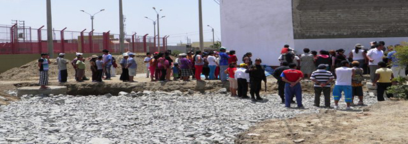 Los vecinos del asentamiento humano Antenor Orrego amenazaron hoy con demoler el inmueble de propiedad del empresario Gerardo Nolasco Gonzales porque invade 7.20 metros la vía pública e impide la construcción de pistas y veredas.(Texto y foto Lindberg Cruzado)