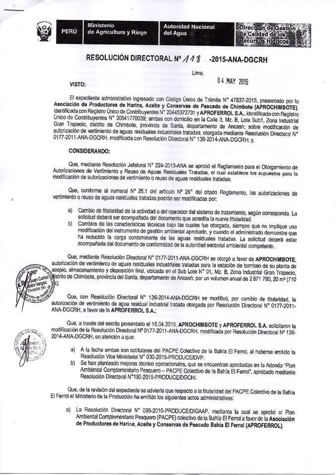 Precisó que a partir de ahora se deberá realizar una labor conjunta con los entes reguladores y fiscalizadores como son el Ministerio de la Producción, la OEFA y ANA, para verificar que todos los vertimientos se efectúen las empresas pesqueras se hagan a través del emisor submarino.