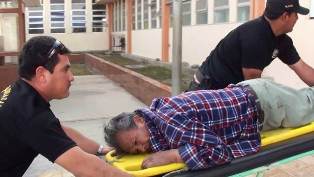 La víctima identificada como Pablo Chapoñan Bances (71) resultó tendida sobre la transitada vía,expuesto a otro peligro mayor. Su hija Yesenia Chapoñan Aguilar (20) que transitaba por la zona identificó a su padre y solicitó ayuda a Serenazgo y pudo trasladarlo al Hospital Regional.