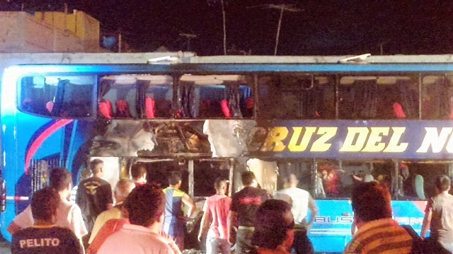 Chimbote en Línea. – Un bus de placa de rodaje B6Z-961 de la empresa de transporte interprovincial Cruz del Norte que había llegado minutos antes de Lima se incendió en su terminal de Nuevo Chimbote.