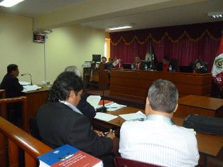 La audiencia que se inició a las 8:00 de la mañana estuvo presidida por el presidente de la Primera Sala de Apelaciones de la Corte Superior de Justicia del Santa, Walter Lomparte Sánchez  y los vocales de sala; Juan Mata Paredes y Oscar Alvarado Sánchez quienes dieron a conocer sus discrepancias con los abogados de los acusados.