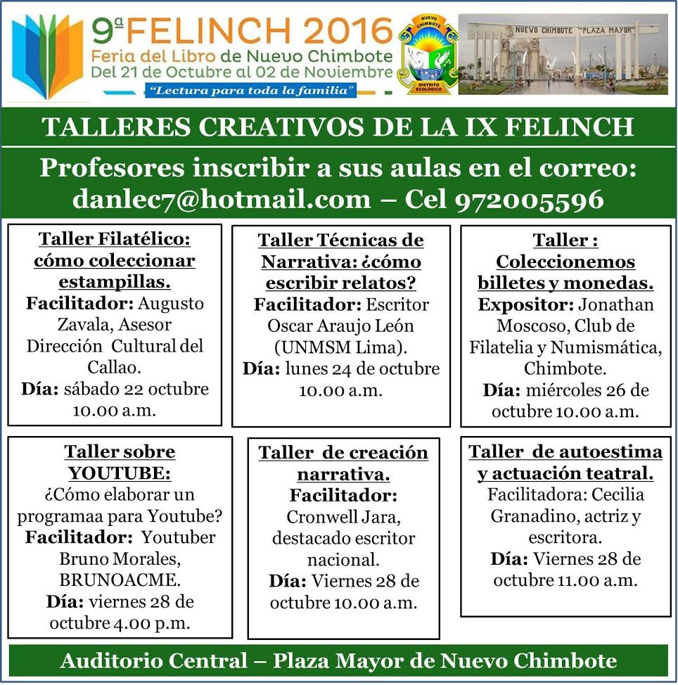 Talleres creativos gratuitos en la Feria del Libro de Nuevo Chimbote 2016