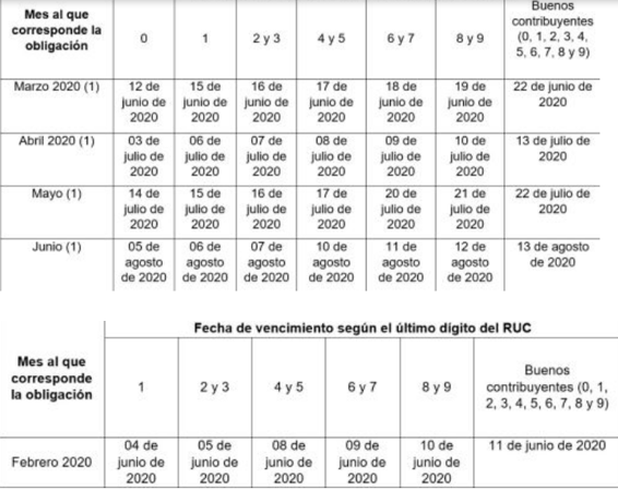 La declaración y pago de esos tributos mensuales se efectuará ahora entre los meses de junio y agosto, para dar mayor alivio tributario, facilidades y liquidez a los contribuyentes, y puedan hacer frente en mejores condiciones al impacto económico generado por la pandemia del Coronavirus.