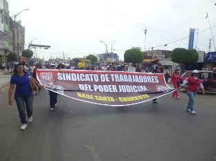 Chimbote en línea (Judiciales).-A doce días de acatar la huelga indefinida, los trabajadores de la Corte Superior de Justicia del Santa recorrieron las calles de Chimbote lanzando consignas, anunciando la radicalización de su protesta a través de una posible huelga de hambre, toma de locales, entre otras medidas a fin de ser escuchados.