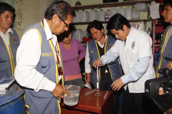 Chimbote en Línea (Locales).- La Unidad de Infracciones y Sanciones (Unis) de la Municipalidad Provincial del Santa realizó un operativo en 3 establecimientos que venían ofreciendo alcohol etílico de 96 grados, verificando si estos cumplían con los requisitos reales de alcohol y no se encuentren adulterados para luego ser vendidos en las próximas fiestas navideñas.