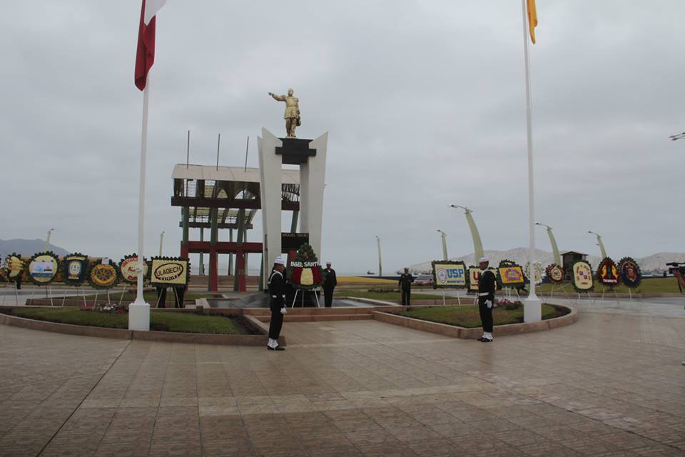 Fue la Plaza Grau de Chimbote, escenario de esta actividad, donde autoridades civiles y militares homenajearon colocando ofrendas florales alrededor del monumento al héroe peruano, quien a bordo del legendario monitor Huáscar combatió contra la flota de guerra chilena el 8 de octubre del año 1879.