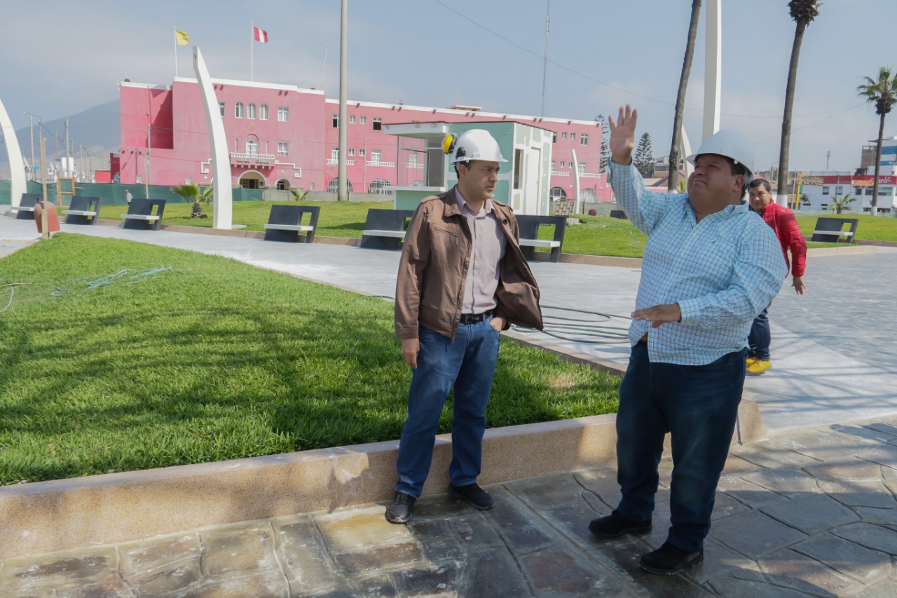 Alcalde Briceño inspeccionó avances de obras de la plaza Grau y malecón de Chimbote