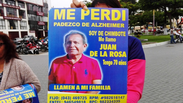 “Mi padre salió de su casa en el pueblo joven Santo Domingo el miércoles 4 de mayo y no ha regresado, él desde hace cuatro meses sufre de Alzheimer y tenemos mucho temor de que algo malo lo pase, por eso pedimos que nos ayuden a encontrar a mi papá”, declaró.