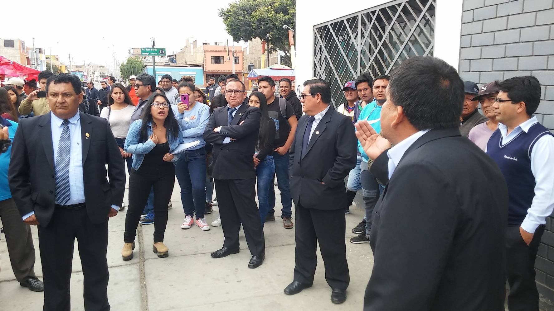 Chimbote en Línea.- A fin de exigir una vez más la salida del rector José María Huamán Ruíz, un grupo de alumnos, exalumnos y docentes de la Universidad San Pedro (USP) tomaron las instalaciones del Rectorado, ubicado en la intersección de la avenida José Pardo y el jirón Saénz Peña del centro de Chimbote.