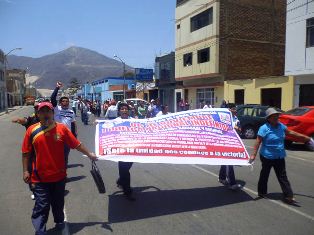 Chimbote en Línea (Locales).-En su octavo día de huelga indefinida, los trabajadores administrativos del sector educación recorrieron las principales calles de Chimbote; exigiendo al Gobierno Central el incremento de sus remuneraciones en 250 nuevos soles y el aumento presupuestal para cancelar a los mil 500 trabajadores de acuerdo al bono establecido por el Decreto de Urgencia Nº037-94.