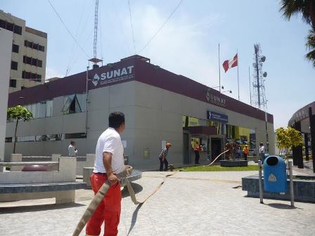 Chimbote en Línea (Locales).- A través de un simulacro en las instalaciones de la Superintendencia Nacional de Aduanas y Administración Tributaria (Sunat), la Compañía de Bomberos de Chimbote demostró su desempeño para responder ante un siniestro, a pesar de la falta de unidades y logística.