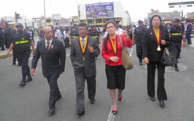 Chimbote en Línea.- Con ausencia de autoridades se dio inicio a las actividades protocolares en honor al santo patrón San Pedrito. A las 9  y media de la mañana se realizó el desfile de banderas. En esta actividad se hicieron presentes los regidores de oposición, Humberto Ortiz Soto y Paola Huamán Vela, mientras que del lado del oficialismo la concejal, Katherine Moreno Alzamora, asimismo la rectora de la Universidad Nacional del Santa, América Odar y el representante de la Gobernación provincial.