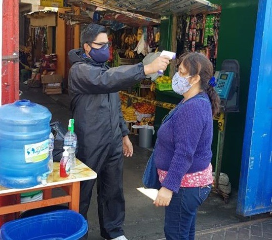 Durante su recorrido, el responsable de dicha área municipal, Jorge Bayona Guio verificó la protección de los productos cárnicos, señalización, la colocación de tachos de basura y puntos de distanciamiento social; además del lavado de manos, la toma de temperatura; aunque falta la renovación de los controles sanitarios.