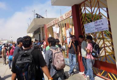 Hubo protestas en la puerta principal de esta casa superior de estudios, en la urbanización Bellamar de Nuevo Chimbote, pero por disposición de las autoridades universitarias no se publicaron los resultados.