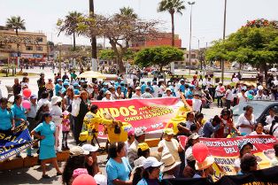 Chimbote en Línea (Locales).-Continuando con la celebración por el día de la no violencia contra la mujer, las diferentes instituciones promotoras de la defensa de los derechos, centros educativos y entidades públicas participaron de la marcha de sensibilización como muestra de total rechazo a cualquier tipo de violencia física o psicológica contra la mujer.
