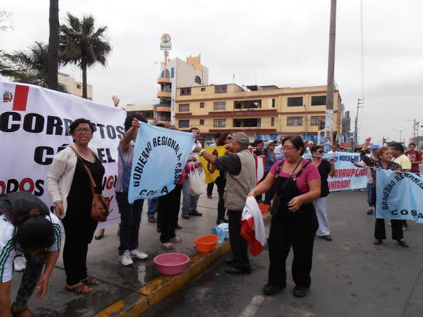 Las organizaciones afiliadas al Rema efectuaron esta mañana un acto de lavado de banderas en la plaza de armas de Chimbote contra la corrupción.