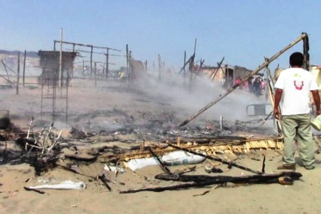 Chimbote en línea (Locales).- Fueron 17 familias de la invasión “Rosa Rojas de Arroyo”, en el pueblo joven San Pedro quienes lo perdieron todo, luego que se produjera un gigantesco incendio que consumió sus viviendas hechas de palos y esteras.