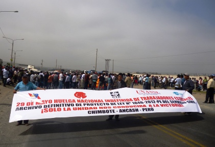 Los servidores se concentraron desde tempranas horas de la mañana en la Plaza 28 de Julio, para luego desplazarse por las diferentes calles de la ciudad, con destino hacia el túnel de Coishco para poder encontrase con los demás dirigentes, pero los efectivos policiales detuvieron la movilización arrojando algunas bombas lacrimógenas.