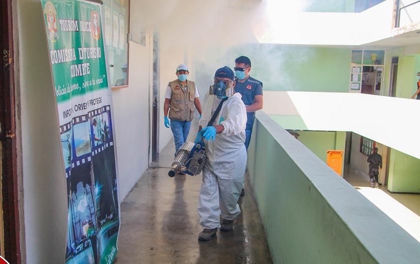 La Municipalidad Provincial del Santa (MPS) ejecutó trabajos de desinfección en el local de la División Policial (Divipol) de Chimbote, en la región Áncash, como parte de las medidas de prevención contra el coronavirus (Covid-19).