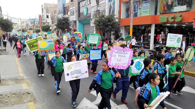 Con carteles, banderolas y con arengas pidieron a los chimbotanos a no ensuciar las calles, ni destruir las áreas verdes de la ciudad, por el contrario, reclamaron también a las autoridades a recuperar los parques y jardines de Chimbote, así como también la Bahía El Ferrol, la cual está contaminada.