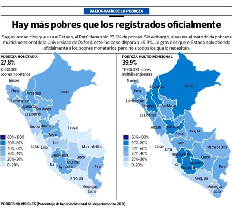 Vásquez, por su parte, señala que si lo que se mide también es el limitado acceso a servicios  de salud, electricidad, agua y educación o a quienes usan carbón o leña para cocinar la figura cambia.  Si se toman en cuenta estos factores, el nivel de pobreza en el país habría que situarlo en el 39,9% de la población, es decir en  11,9 millones de peruanos.