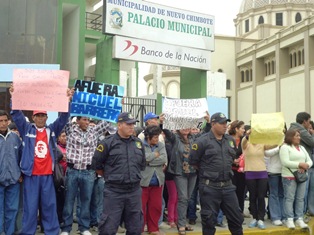 Los pobladores se dirigieron hacia la Plaza Mayor portando pancartas con mensajes alusivos a la destitución del secretario general por parte del ayuntamiento sureño. (Por: Cintia Cabrera).