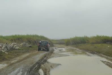 El aumento de la napa freática y la salinización de tierras en esta parte del distrito sureño han provocado que la vía se vuelva intransitable en varios puntos.