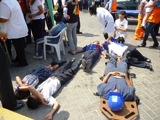 En esta ocasión, el grupo de obreros de construcción civil se organizó y acató el simulacro en un 100%, ellos abandonaron de emergencia sus labores en el edificio de Implementación del Nuevo Código Procesal Penal que se construye a un costado de la catedral.