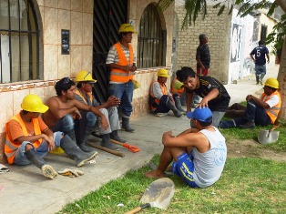 Los hombres del andamio tomaron esta medida de fuerza ya que el consorcio ha recortado sus ingresos en aproximadamente 65 soles. A algunos se les adeuda por días de trabajo y hasta el momento el administrador del consorcio no informa el motivo del recorte.