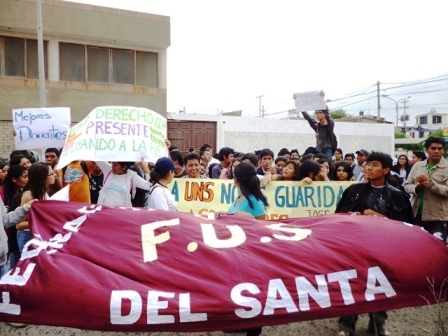 Chimbotenlinea.com (Por Cintia Cabrera).- Por quince días quedó suspendida la declaratoria de huelga indefinida de los estudiantes de la Universidad Nacional del Santa (UNS) en vista que el Consejo Universitario en una sesión extraordinaria resolvió acceder a cumplir con las exigencias de este grupo de estudiantes.