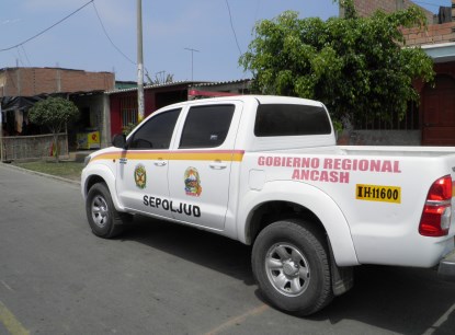 El vehículo oficial de placa GH-986 fue fotografiado y filmado por la prensa a unos metros del “Rinconcito Cajabambino”, lugar al que acuden frecuentemente, según los vecinos del lugar.