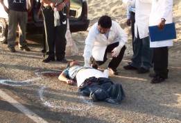 Una hora más tarde llegó el médico legista y el fiscal de turno para ordenar el levantamiento del cadáver hacia la morgue central.