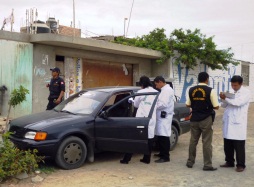Los peritos de criminalística recogieron evidencias del vehículo Toyota Tercel cuya