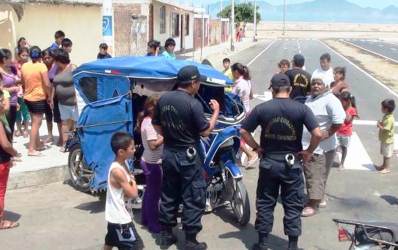 El hecho ocurrió en la primera etapa del asentamiento humano Las Delicias, donde su esposo Miguel Ángel Mariños Zegarra (28) fue embestido por una mototaxi de placa MPY-37048, conducido aparentemente por un menor de edad que transitaba a excesiva velocidad, según contó la agraviada. Mariños Zegarra sufrió una fractura de tobillo derecho además de las raspaduras en la pierna y brazos.