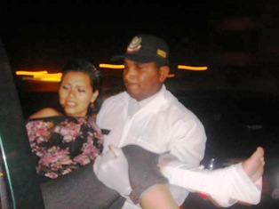 Chimbotenlinea.com (Por Cintia Cabrera).- Vilma Herrera Tank (30) resultó con la pierna entablillada luego de sufrir una lesión por una inesperada lesión que sufrió al descender intempestivamente de un vehículo aún en movimiento, en cuyo interior aparentemente sostenía una discusión con un sujeto.