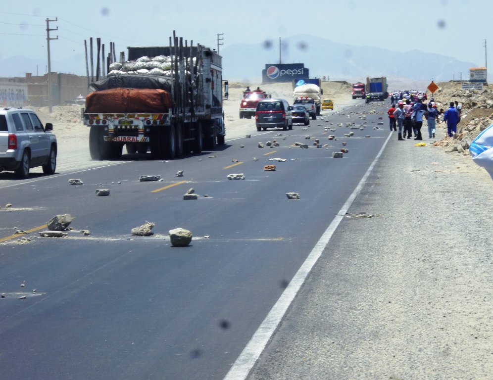 A pesar que el bloqueo de carreteras está penado por impedir el libre tránsito vehicular, según el Código Penal, los docentes hicieron caso omiso a esta ley y a lo largo de la Carretera Panamericana Norte (CPN), bloquearon la carretera colocando piedras que dificultaban y paralizaban el tránsito de unidades vehiculares.