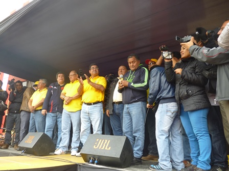 Esta manifestación, que contó también con la presencia del congresista “comando” Heriberto Benitez y un numeroso grupo de afiliados al sindicato de Construcción Civil, aliado político de la agrupación Cuenta Conmigo, se produjo en respuesta al anunciado paro regional programado para ayer viernes de 19 de julio, por dirigentes de los pueblos y sociedad civil, al que denominaron “Por la Dignidad, Contra la Corrupción y el Sicariato” y que no llegó a realizarse.