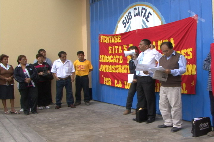 El plantón estuvo convocado por el secretario general del Sindicato Trabajadores Administrativos de Centros Educativos(Sutace) de la Unidad de Gestión Educativa del Santa (Ugel) Santa, Luis Aparicio Cavero, quien contó con el respaldo del Sindicato Único de Trabajadores Educativos de la Provincia (Sutep).