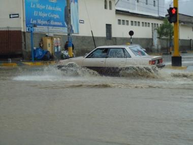 Para el colmo los transportistas haciendo uso de sus unidades cometen el abuso de salpicar las aguas de lluvia que discurren por las calles a los peatones.