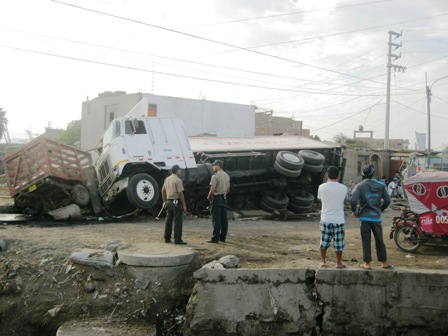 Los miembros policiales informaron que el accidente ocurrió a la altura del kilómetro 447 de la Carretera Panamericana Norte. Presuntamente el conductor José Avendaño Ramírez de 43 años conducía el camión frigorífico a excesiva velocidad y en la curva del Cruce de Santa se despistó.