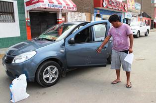 Este transportista salvó de milagro. El miércoles a las 9 de la noche cuando regresaba de Chimbote a Guadalupito con cuatro pasajeros a bordo dos delincuentes vestidos de negro desde una moto lineal dispararon contra su vehículo de placa BOY-067.